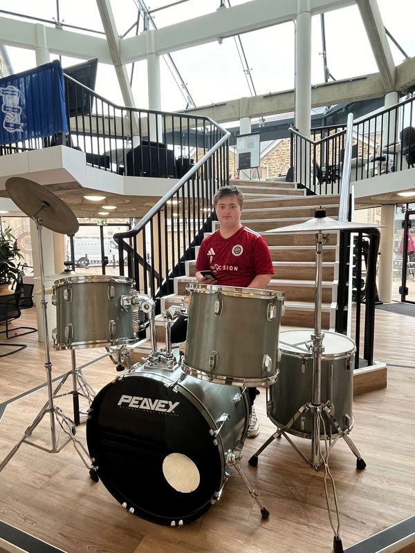 Archie is loving his new drum set!